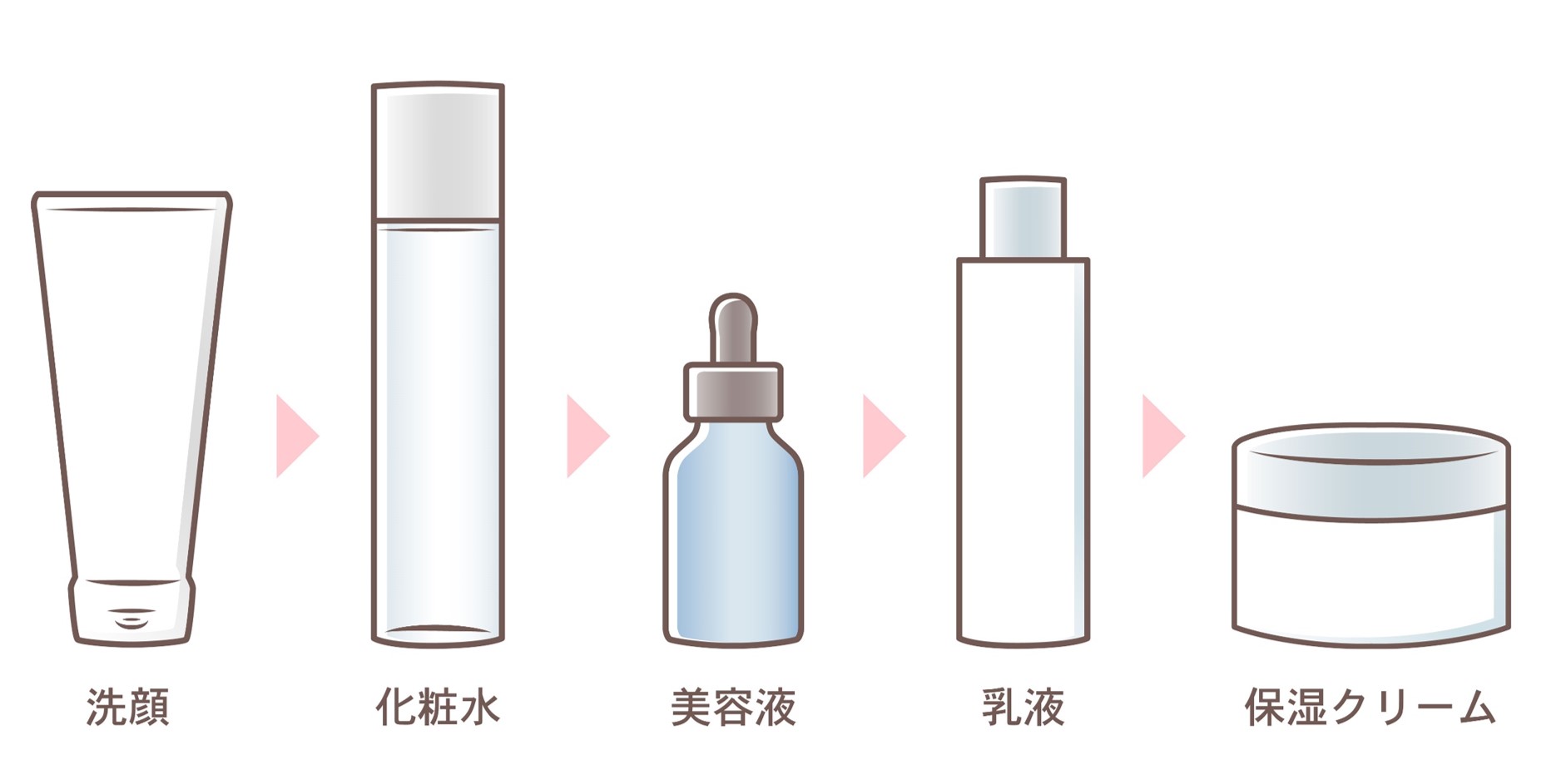 洗顔⇒化粧水⇒美容液⇒乳液⇒保湿クリーム、と5つのステップがあります。