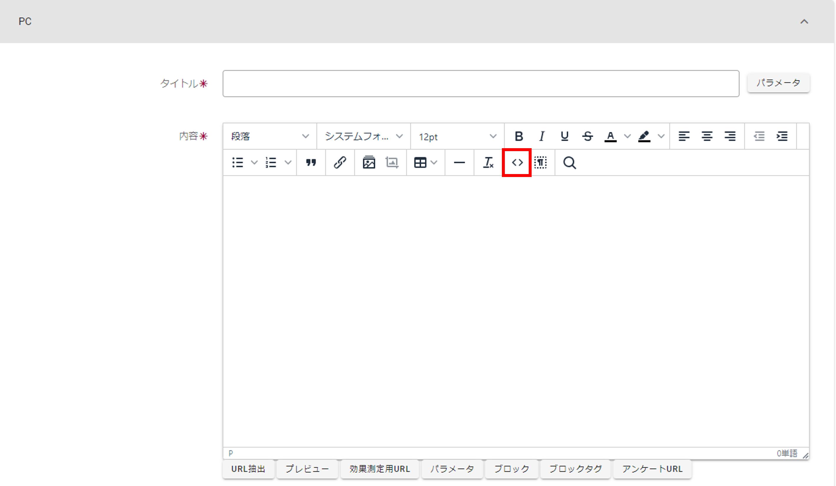 そのため、外部のエディターで作成するかメール配信画面でHTMLメールを作成ください。