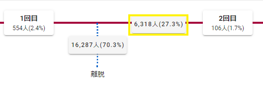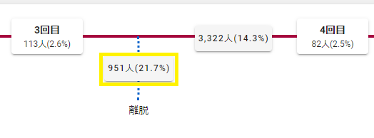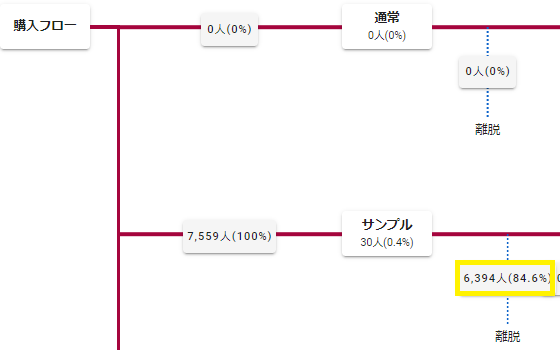 「購入フロー」の「サンプル」から「離脱」のフローボックスを押下します。(黄色枠)