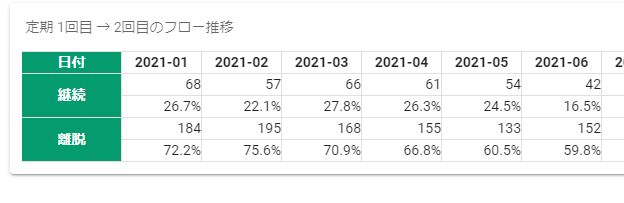 顧客推移のページが表示されますので、現時点からさかのぼって12か月分の各月の推移を確認することができます。