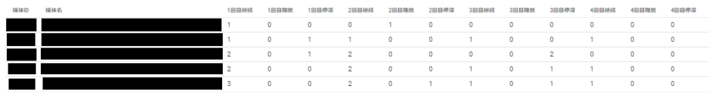 定期商品注文時に経由した媒体(広告)ごとに定期継続率を把握することができます。