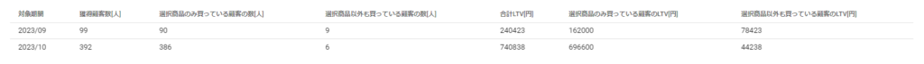 獲得月(初回購入月)ごとに新規商品購入後のLTVを計測します。