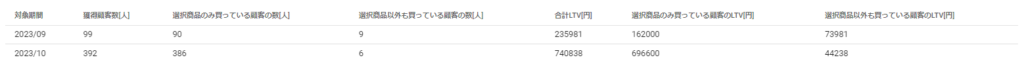獲得月(初回購入月)ごとに新規商品購入後のLTVを計測します。