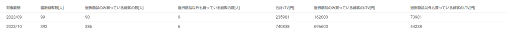 獲得月(初回購入月)ごとに新規商品購入後のLTVを計測します。
