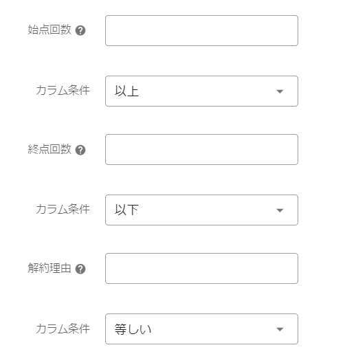 始点・終点回数、解約理由を検索条件として指定する(独自分析ID:86)