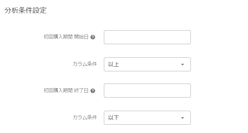 初回購入時の媒体名 ・初回購入日 ・初回購入数量 ・初回購入金額を一覧に表示します。