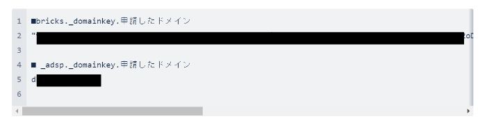1. テコラスから送付されたDKIM情報の1行目 ■bricks._domainkey.申請したドメイン をメモしておく