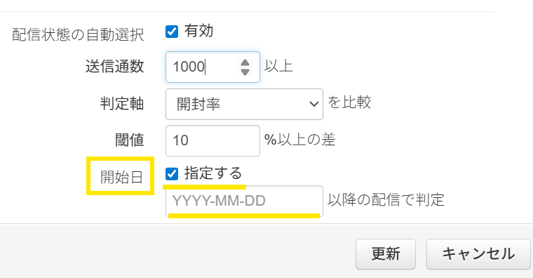 ※この条件を適用する場合は、「配信状態の自動選択:有効」にチェックを入れてください。