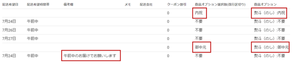 さらに、注文データに「熨斗の有無」など購入用途のデータを保持している場合は、