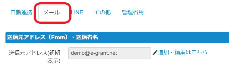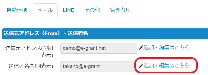 3.「送信者名(初期表示)」の右の「追加・編集はこちら」を押下する