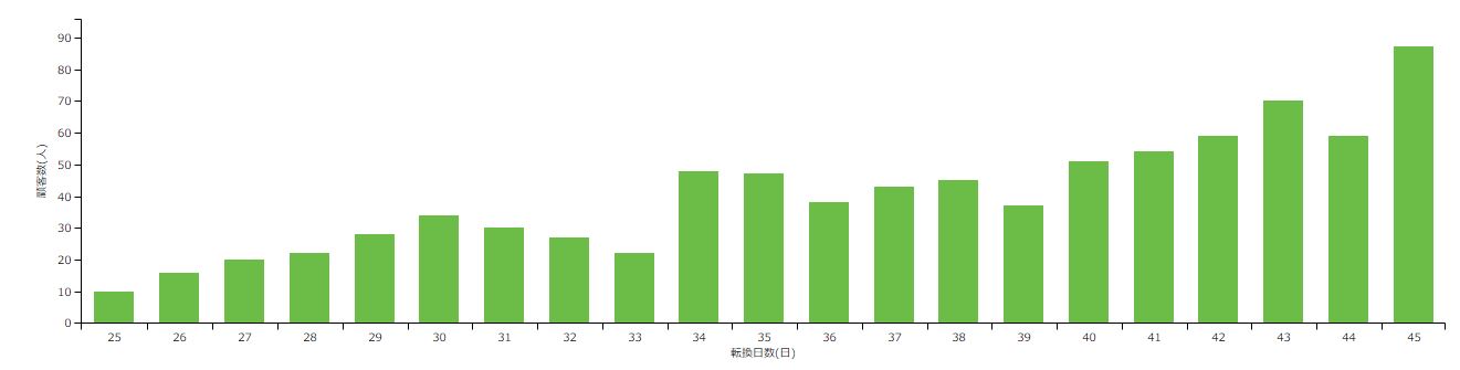 縦軸は顧客数【人】、横軸は転換日数【日】となっています。