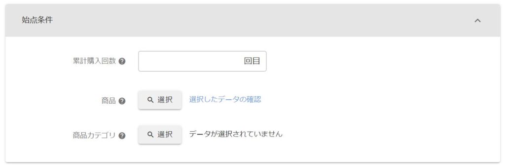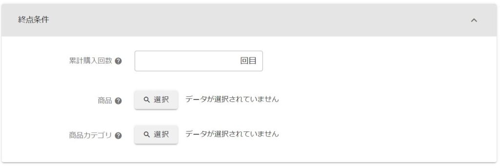 (例)始点条件の累計購入回数を「1」、終点条件の累計購入回数を「2」とすると、