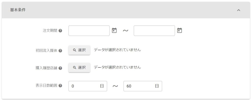指定した注文期間内で転換(購入)した履歴のある顧客を分析対象とします。
