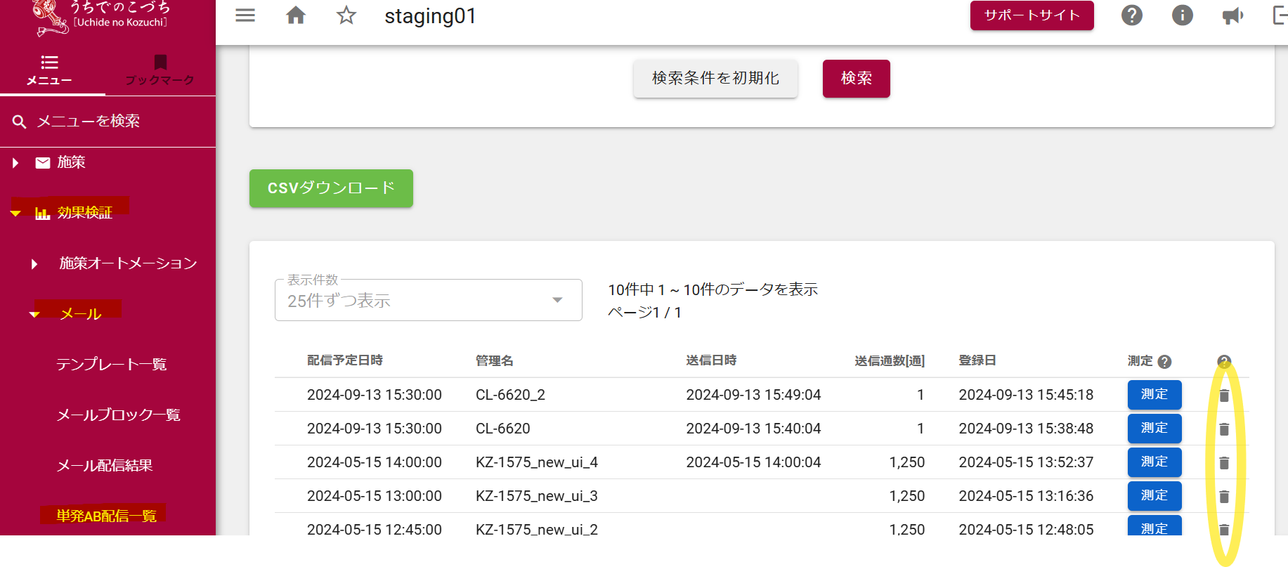 ※メール配信結果の画面に、送信通数や顧客数が0件となってメール配信履歴が表示される場合があります。