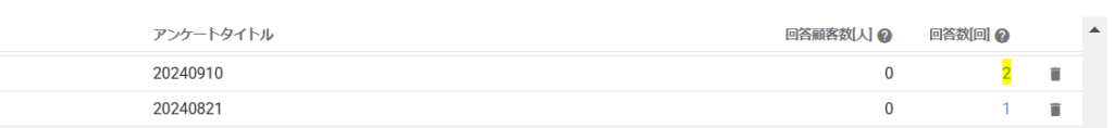 ※画面を横にスクロールすることで、「回答数[回]」という項目が確認できます。