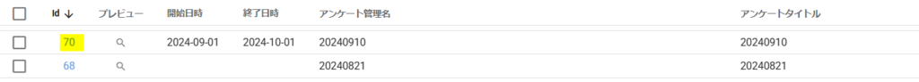 編集したいアンケートIDを押下し、編集画面を開いてください。