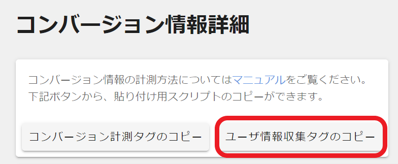 2.「ユーザ情報収集タグのコピー」をクリックする