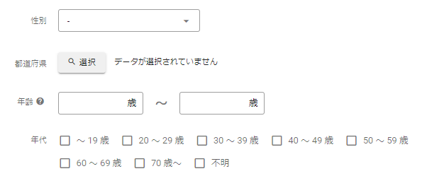 「年齢」と組み合わせたり、複数選択することで広い範囲で対象の絞り込みができます。