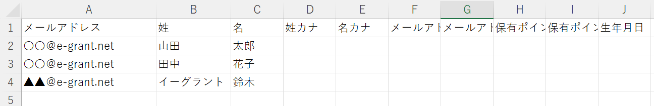 フォーマットの1行目は削除せず、そのままお使いください。