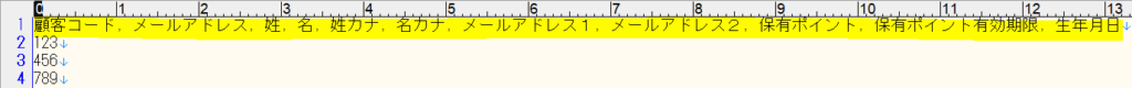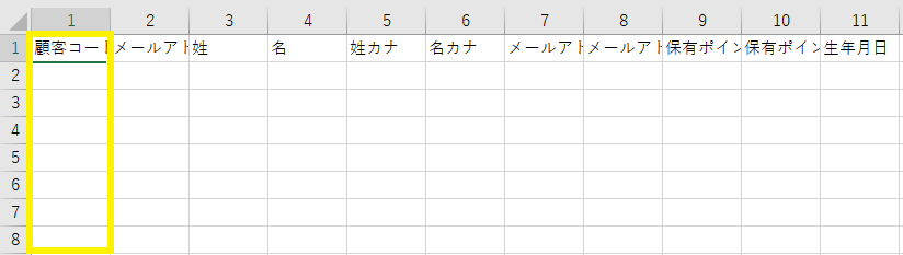 ※顧客コードの列のみ入力する場合も、1行目の他の項目は削除せずご使用ください。