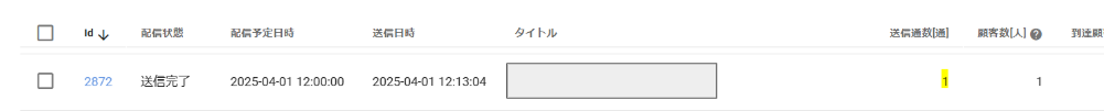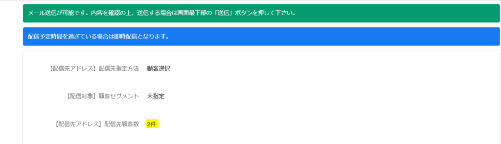 「配信対象顧客がありません」と表示されますのでご注意ください。