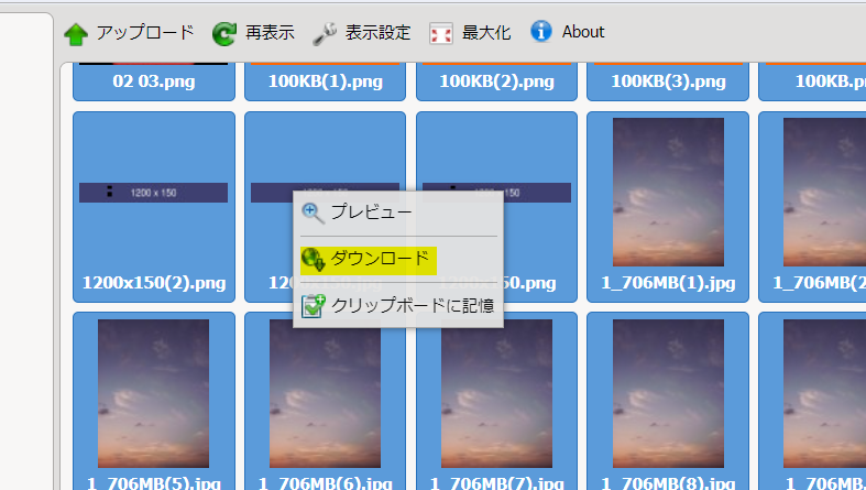 うちでのこづちの画像サーバーにアップロードした画像を一括ダウンロードしたいです。