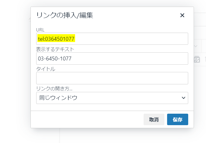上記のリンク挿入手順で電話がかけられます。