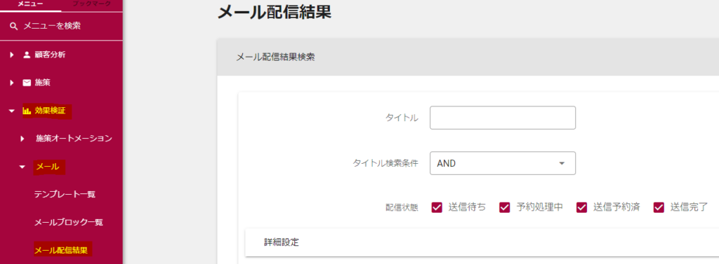 効果検証 > メール > メール配信結果 にて配信予定数を確認いただくようお願いいたします。
