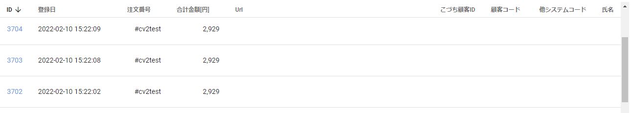 「効果測定用URL」のクリックに関わらず、購入完了ページに遷移した全注文が表示されます。