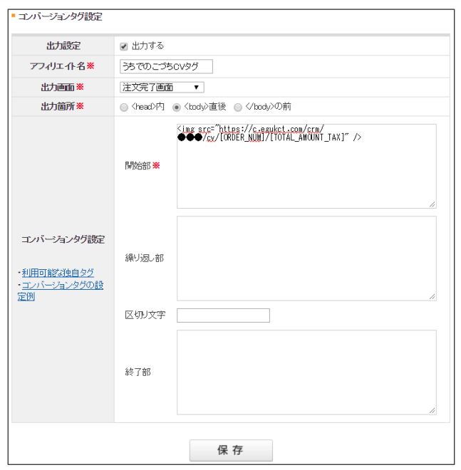 2.「コンバージョンタグBODYタグ内表示用」の入力欄にタグを入力