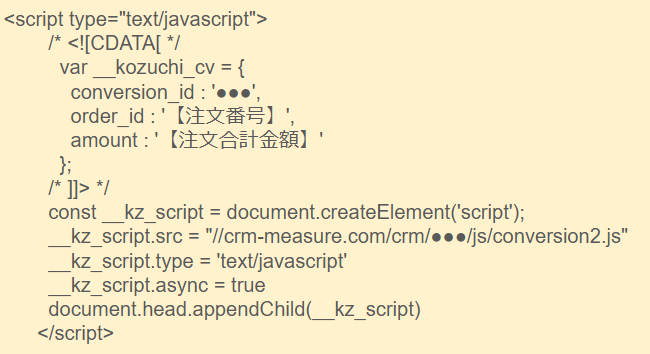※「●●●」は、実際にはコンバージョン計測タグをコピーした際、