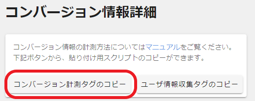 2.「コンバージョン計測タグのコピー」をクリックする