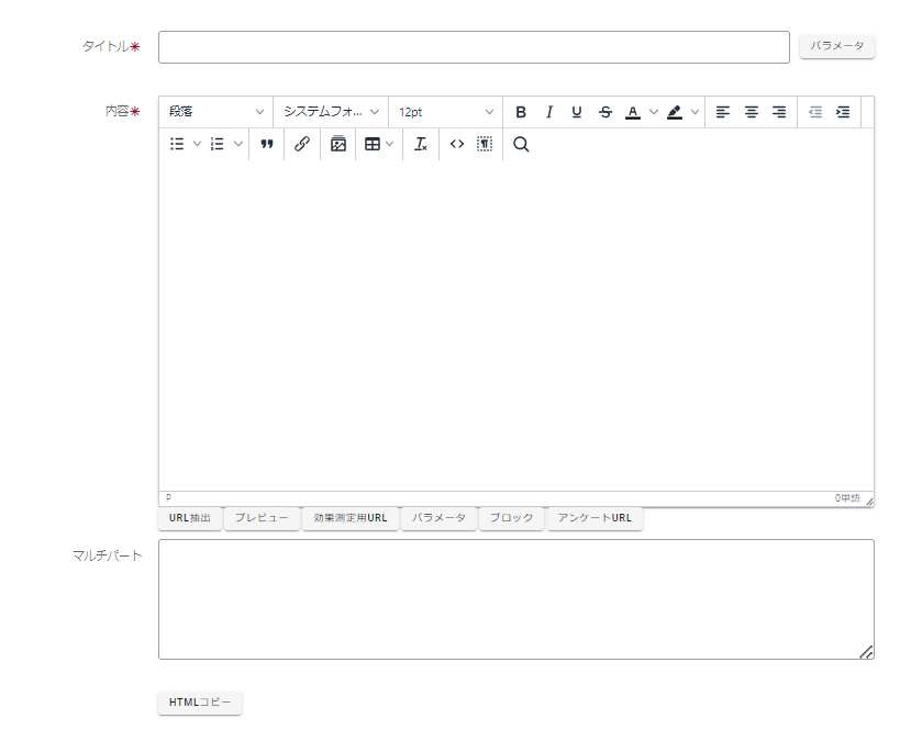 HTMLメールが受信できない顧客に対して、代わりにテキストメールを配信するための機能です。メール本文とあわせてご入力ください。