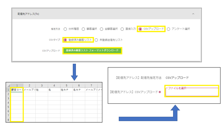 うちでのこづちに登録されている顧客のCSVデータを使用する際に選択してください。