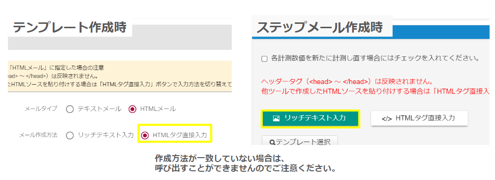 作成したテンプレートをステップメール作成画面の「テンプレート選択」で呼び出すことができません。