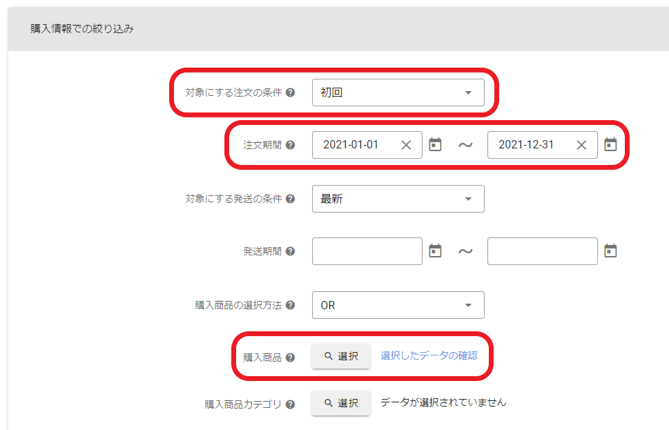 2.購入情報での絞り込みを行う