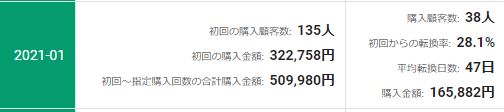 ※この例では、初回購入キャンペーンを行った月を2021年1月と2021年9月とします。