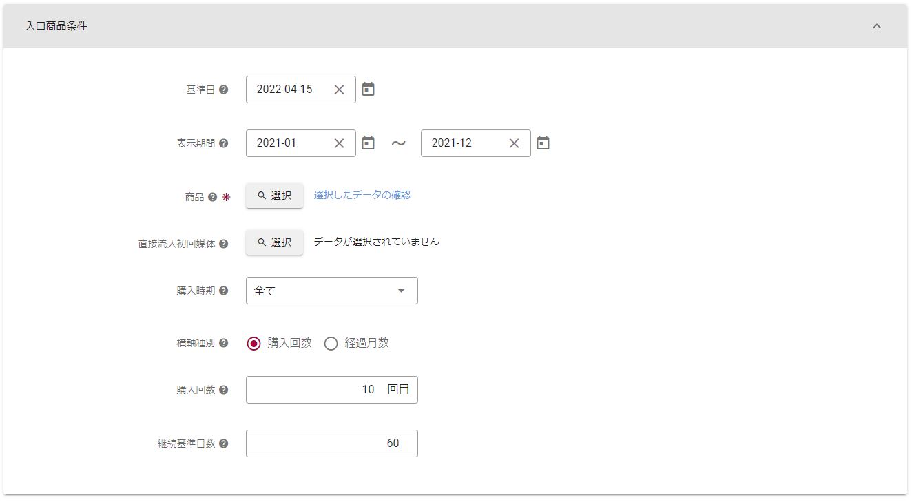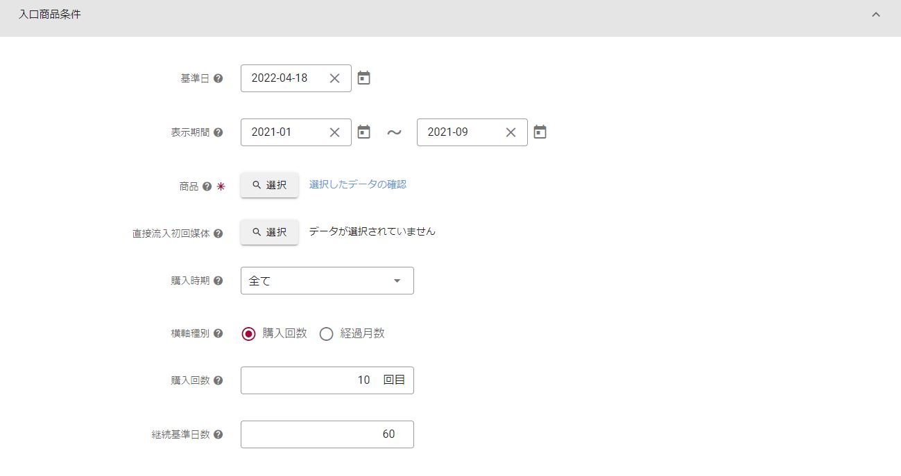 分析結果を表示させたい初回購入月の期間を入力する