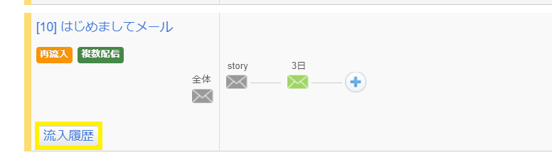 対象の施策オートメーションに現在流入中の顧客、過去に流入していた顧客すべてが表示されます。