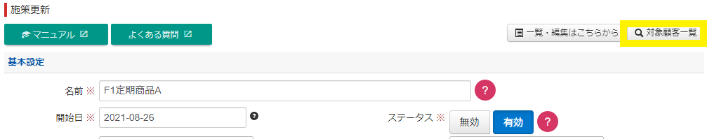 「対象顧客一覧」ボタンを押下して表示される顧客はどのような顧客ですか。