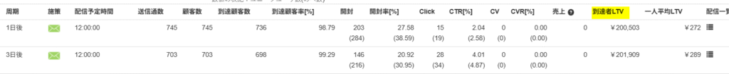 1通目は「送信エラー」のステータスを保持しているため、1通目の到達者LTVには計上されません。