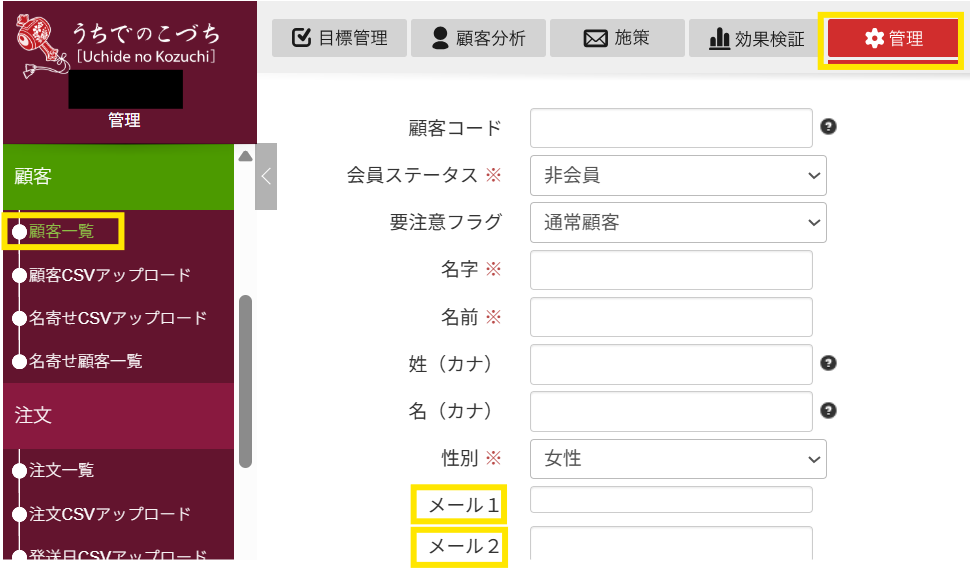 ※顧客情報は、管理 > 顧客 > 顧客一覧 の各顧客データから確認いただけます。