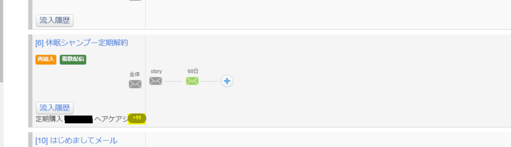 例)上図の場合、定期購入ヘアケアのほかに11件の商品が購入商品で指定されている