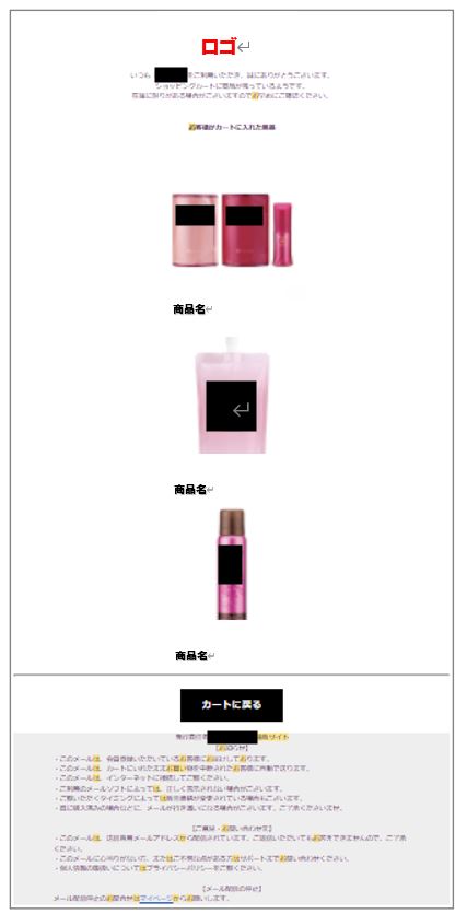 【カゴ落ちメール】概要 目次 実践 有料オプション機能(別途申込要) 買い物カゴに未購入商品が残っている顧客に対し、自動配信で購入を促すメール施策です。商品購入への温度感が高いタイミングでアプローチできるため、高いCVRが期待できます。カゴ落ち商品が購入されると、メールは配信ストップします。 実践 導入準備 使ってみよう🔰 【カゴ落ちメール】の基本的な操作手順 よくある質問💡 トラブルシューティング Updated on 2023年10月5日 Tagged: HOWTOカゴ落ちメール Was this article helpful? Yes No Related Articles 【カゴ落ちメール】よくある質問💡 【カゴ落ちメール】使ってみよう🔰 【カゴ落ちメール】導入準備