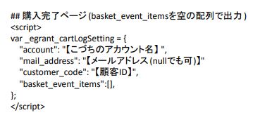 埋め込むタグのテンプレート(購入完了ページ)