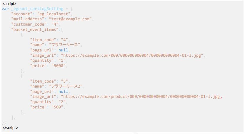 「カゴ落ちデータ取得用タグ」の設定