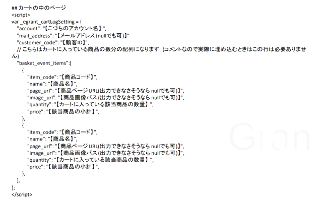 埋め込むタグのテンプレート(カートの中のページ)