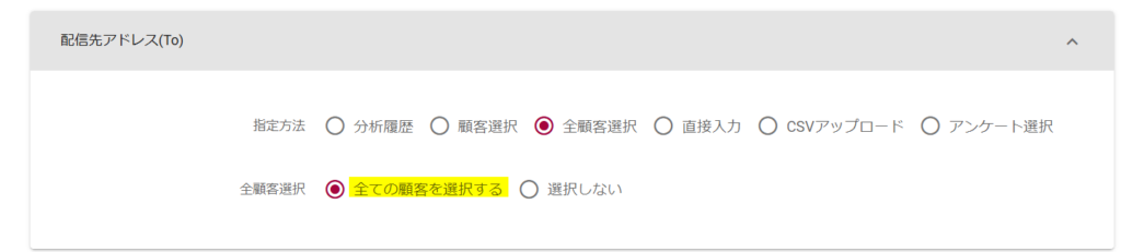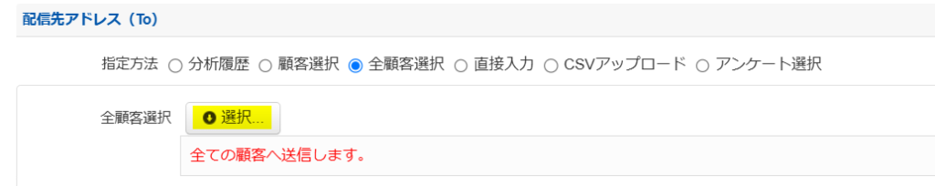 ・指定方法:全顧客選択