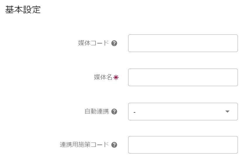 うちでのこづち内で媒体として取り扱うために任意のコードを入力します。