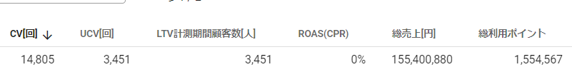 該当広告(媒体)からのCV以降の利用ポイントの合計を表示しています。
